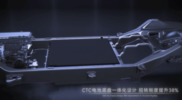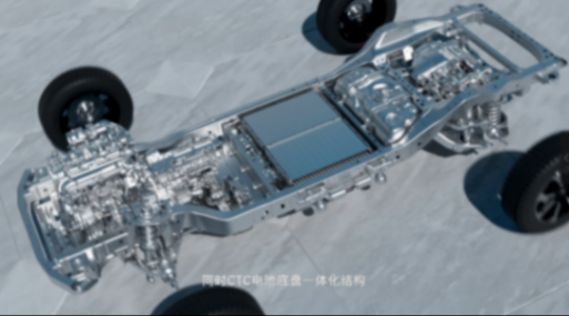 首先,它采用了CTC電池底盤一體化技術,簡單來說就是,刀片電池在供電的同時也是車身結構件,這樣一來,整車的重心更低,車身剛度大幅提升,通過性能和操控性能都得到了加強。