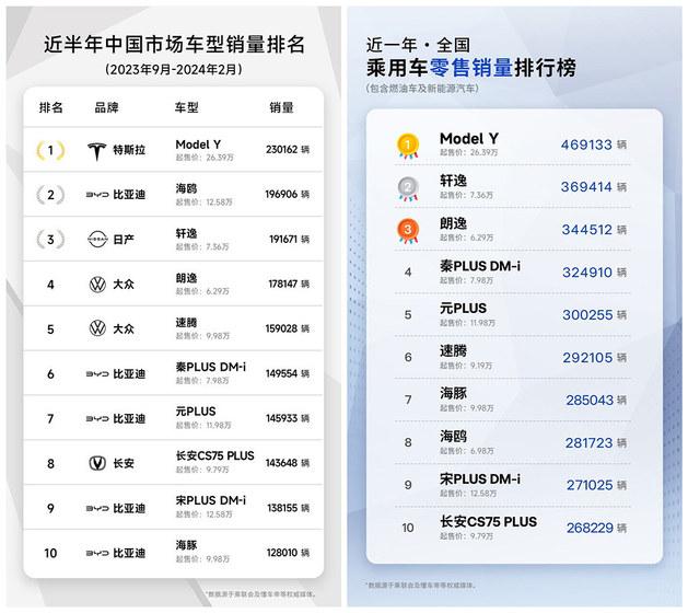進入2024年以來,特斯拉中國市場銷量持續領先:在近一年和近半年中國市場乘用車銷量排名中,特斯拉Model Y銷量大幅領先于第二名;2023年中國豪華轎車銷冠Model 3也在近幾個月一直保持著月度豪華轎車交付冠軍紀錄。而據媒體統計的一季度20萬以上純電動車市場品牌銷量,特斯拉同樣大幅領先。