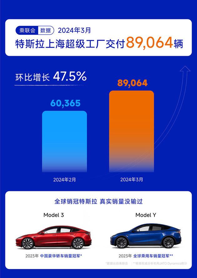 與此同時,乘聯會于今日發布了2024年3月中國市場新能源乘用車預估銷量,3月特斯拉上海超級工廠預計交付達89064輛電動車,環比大增近48%。延續2023年的強勁增長態勢,特斯拉正持續引領全球電動車和新能源事業不斷開拓更廣闊的市場。