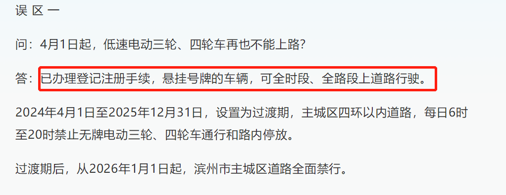 等到過渡期結束,也就是2026年1月1日起,濱州市主城區道路將實施全面禁行,屆時相關車輛也就不允許上道路行駛了。
