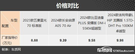 此次推薦的四款車型分別是五菱星光、長安啟源A05、比亞迪秦PLUS榮耀版 DM-i和吉利帝豪L HiP龍騰版。其中,比亞迪秦PLUS DM-i是國內(nèi)插電混動市場的明星車型,位居銷量排行榜前列。剛剛上市的比亞迪秦PLUS榮耀版 DM-i價格門檻進(jìn)一步下探,讓綜合競爭力得到明顯提升。五菱星光、長安啟源A05和吉利帝豪L HiP龍騰版都是插電混動市場的挑戰(zhàn)者,希望從火爆的新能源市場分走更多份額。車型選擇方面,四款車型的廠商指導(dǎo)價均低于10萬元,五菱星光是入門級車型,長安啟源A05、比亞迪秦PLUS榮耀版 DM-i和吉利帝豪L HiP龍騰版都是次低配車型。