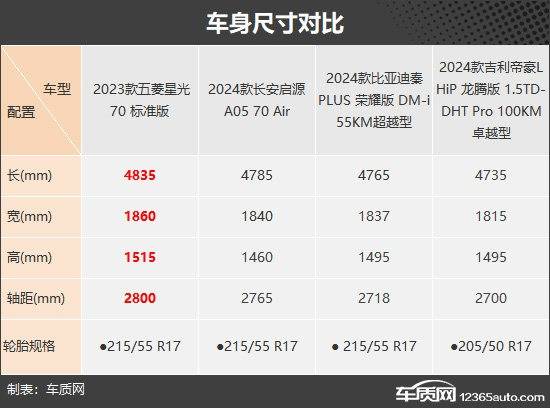 車身尺寸方面,五菱星光優(yōu)勢明顯。作為一款中型車,它在這一環(huán)節(jié)獲得完勝,在長寬高和軸距方面都處于領(lǐng)先,相比軸距最短的吉利帝豪L HiP龍騰版,五菱星光的軸距優(yōu)勢達(dá)到100mm。