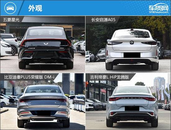 四款車型的尾部造型也是各具特色,五菱星光和比亞迪秦PLUS榮耀版 DM-i采用貫穿式尾燈組,但放置的位置有所不同。五菱星光的貫穿式尾燈設(shè)置在后備廂蓋上沿,比亞迪秦PLUS榮耀版 DM-i則是設(shè)置車尾的中間部位。吉利帝豪L HiP龍騰版雖然未采用貫穿式尾燈組,但通過裝飾條將兩側(cè)尾燈連接起來。長安啟源A05是四款車中,唯一采用分體式尾燈組設(shè)計的車型。