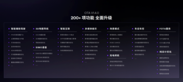 V1.4.0版本還升級了一系列行車體驗優(yōu)化,如:新增自動轉(zhuǎn)向燈功能、新增PPA高速高架變道風(fēng)格設(shè)置、轉(zhuǎn)向自動圖像輔助新增盲區(qū)預(yù)警等,并優(yōu)化了前向碰撞預(yù)警FCW和自動緊急制動AEB之類的ADAS功能體驗。未來,還將更新城市PPA駕駛風(fēng)格選擇。