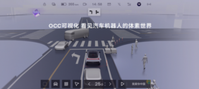 值得一提的是,為了讓用戶更好地感知OCC技術(shù)原理,并能更加安心地使用,V1.4.0版本新增OCC 3D地圖彩蛋,用戶可以通過車機(jī)屏幕清晰地看到汽車機(jī)器人眼中的世界。如同積木一樣不同顏色的方塊標(biāo)識出車外的障礙物/綠化帶/其他車輛等,還有卡通的3D人物標(biāo)識出過往的行人,給晦澀的AI技術(shù)增添了許多樂趣。該功能還支持通過語音開啟與關(guān)閉,操控十分便捷。