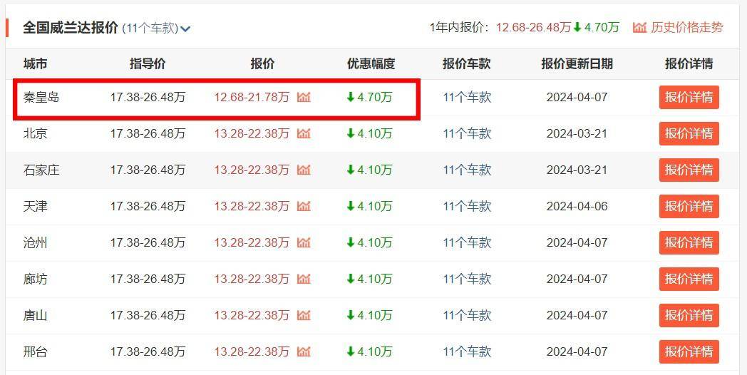 文章到這,我猜不少朋友心里面可能更加云里霧里了,到底威蘭達這車眼下能優(yōu)惠多少錢呢?實不相瞞,從我們在經(jīng)銷商處所了解到的情況來看,眼下廣汽豐田威蘭達車系其實已經(jīng)能夠做到最低12萬多便能提裸車的價格了。而擁有此優(yōu)惠的地區(qū)則是在河北的秦皇島,建議身處該地區(qū)的朋友可以直接過去看一看。