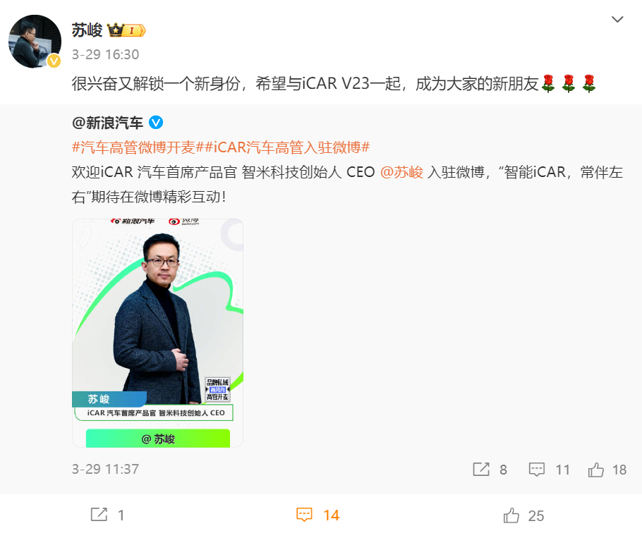 如果真是這樣,蘇峻做“奇瑞新能源首席產(chǎn)品規(guī)劃官、iCAR品牌的首席產(chǎn)品官”這件事就能說得通了。