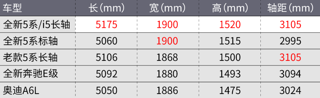 尺寸方面,全新一代5系無論是長寬高還是軸距,都是同級別中最大的,甚至連標軸版的全新5系,車身長度都已經達到了長軸E級、A6L的水平。可以說,這代5系的尺寸是完全越級規格,接近5.2米的車長,甚至可以說是標軸D級轎車了。