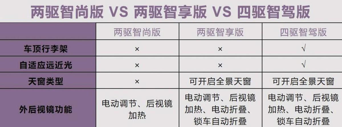 在舒適度的配置上,兩驅(qū)智享版和四驅(qū)智駕版的配置差不多,只是少了兩驅(qū)智享版。