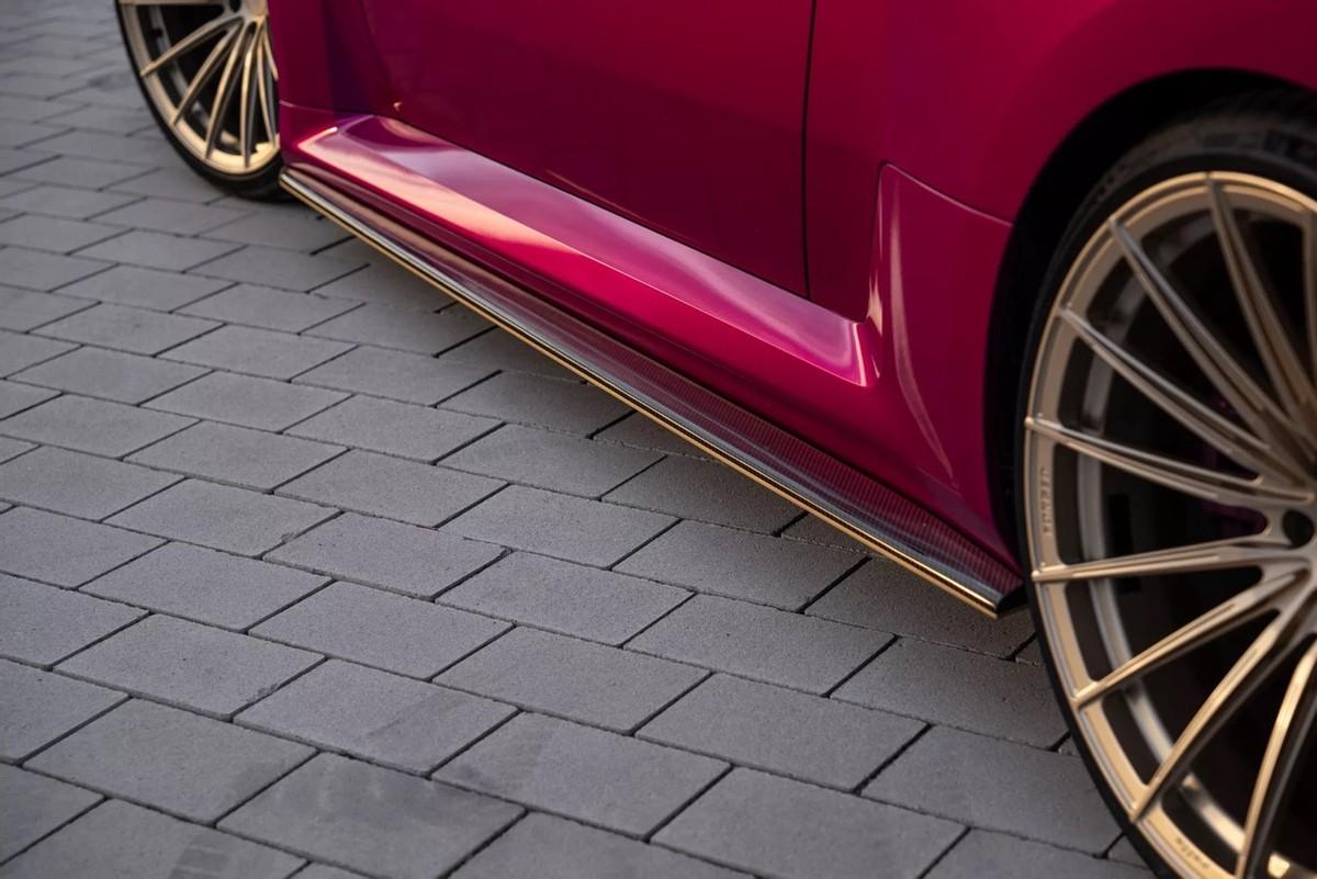 車身側面保留了MH2 560套件的碳纖維側鏟,阻擋了部分氣流進入車底,從而減少車底紊流的產生。輪圈改用Raffa RFS-02系列鍛造輪圈,前輪規格是20×10.5J,后輪規格是21×11.5J,相對原廠提升了一個級別。