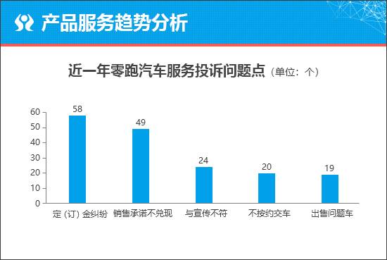 從服務投訴問題點來看,“定(訂)金糾紛”、“銷售承諾不兌現”投訴量相對較高,通過進一步分析可知,該問題主要來自于零跑C11車型。此外,部分消費者反映零跑汽車品牌還存在“與宣傳不符”和“不按約交車”等問題。