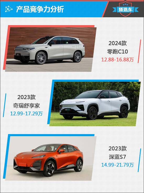 新能源中型SUV市場非常火熱,零跑C10要面臨的競爭對手也都很有實力。其中奇瑞舒享家和深藍S7就是比較有代表性的車型,都有自己獨特的亮點,并且有著不錯的市場表現。我們就將奇瑞舒享家和深藍S7列為競爭對手,看看零跑C10能否與之抗衡。