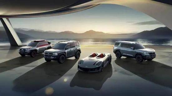 SUPER 9是最后登場的,也是這次發布會最大的彩蛋。在硬派SUV中,出現一個跑車品類,雖然有點跳躍,但是四臺車出現在屏幕上時,一點也不違和。