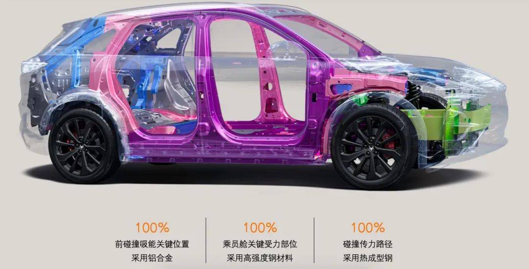 從數據上看,阿爾法T5車身采用81%多的高強度鋼和鋁合金,行業平均值是60%,宋PLUS EV只有62%,零跑C11稍高點,為76.2%,但均比T5要少。