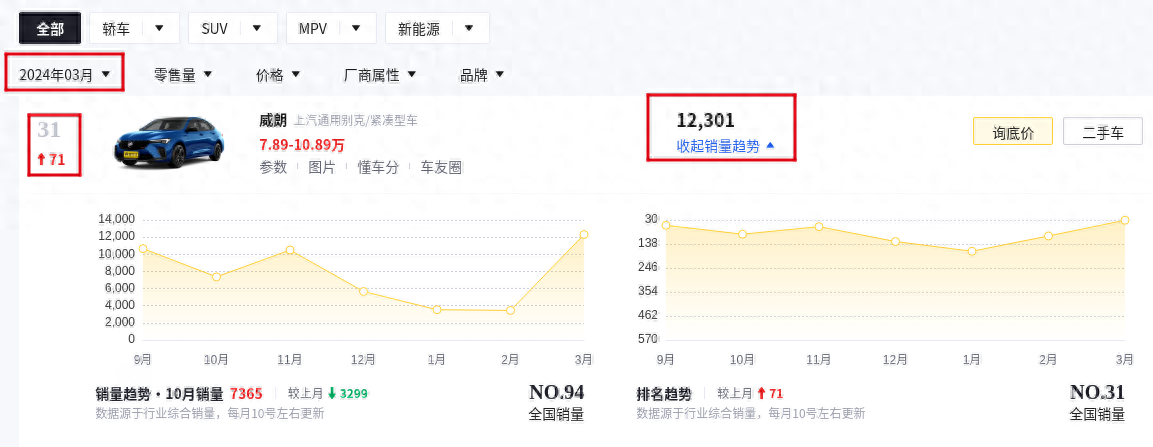 隨著當(dāng)下新能源汽車的快速發(fā)展崛起,對(duì)于傳統(tǒng)燃油車的沖擊也在不斷擴(kuò)大。畢竟作為新能源汽車,其較低的用車成本吸引了非常多的消費(fèi)者。雖然對(duì)于統(tǒng)燃油車而言,整體的銷量遭受了很大的沖擊,但是有一些車型的關(guān)注度依舊表現(xiàn)不錯(cuò),今天我們要說的這款車則是別克汽車旗下的威朗了,在懂車帝發(fā)布的2024年3月份汽車銷量排行榜中,別克威朗銷量12301輛,名列3月份汽車銷量排行榜的第三十一名。值得一提的是,此次的別克威朗在銷量排名上,相比2月份而言,其排名上漲了71個(gè)名次。那么對(duì)于別克威朗這款車而言,其首年的用車成本如何呢?