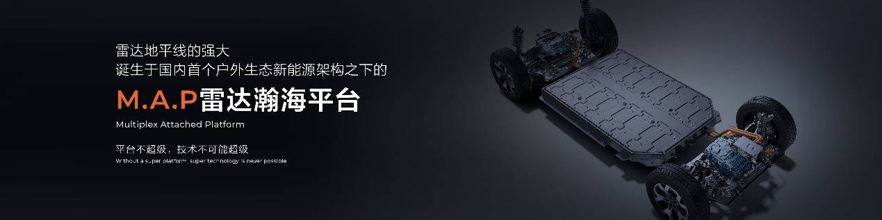 雷達地平線誕生于國內首個戶外生態新能源架構之下的M.A.P雷達瀚海平臺。與其他平臺不同,M.A.P雷達瀚海平臺融合頂流的皮卡技術和先進的新能源乘用車技術,讓平臺上誕生的每一款車,擁有能夠全面超越傳統皮卡平臺的機械性能,和全面趕超先進新能源平臺的電特性。該平臺不止是產品平臺、技術平臺,還是多元戶外生態平臺,是雷達構建戶外生態最重要的支點,也是超級與不超級的分界點。