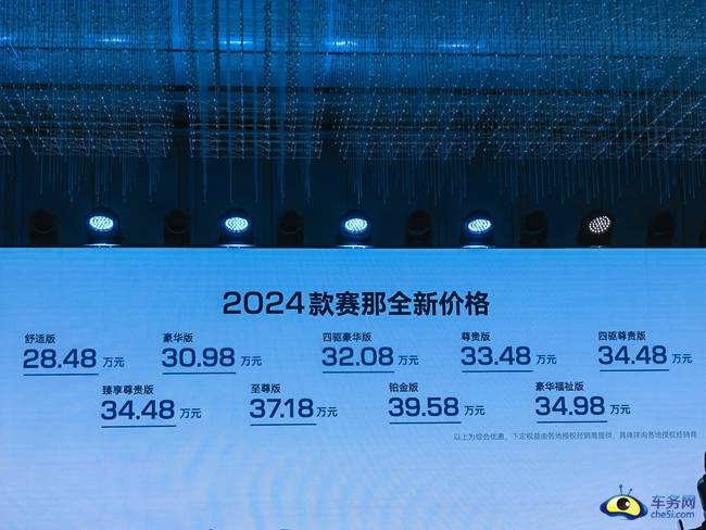 2024年4月23日,2024款豐田賽那正式上市,新車共推出9款車型,建議零售價區間為29.98-41.08萬元,全系官方降價至高2.5萬元,綜合優惠后售價區間為28.48-39.58萬元。作為改款車型,新車搭載了E-Four四驅系統車型,部分車型車機芯片升級為高通驍龍8155,并且提供了第二排航空座椅和智能化車機等配置。詳細車型售價請見下表: