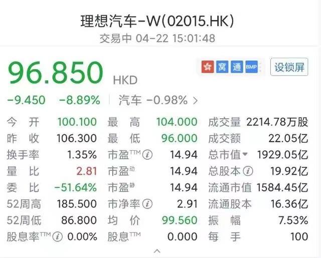 危急之下,4月22日,理想汽車采取了降價措施,宣布除理想L6以外的全系車型都降價,最高降幅高達3萬元,而就是受全系降價的影響,當天開盤,理想汽車港股創新低,最高跌幅將近9%,可以說理想汽車在資本市場近來頻繁受挫。
